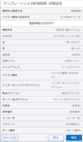 - インターネットサービス>アドレス帳>詳細設定>テンプレートによる新規登録を選択します。