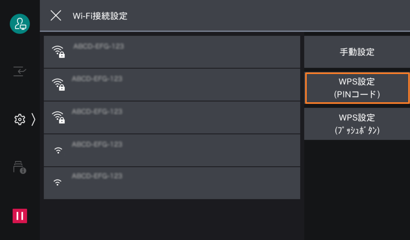 [開始]を押してから2 分以内に、表示されたPIN コードを無線LAN アクセスポイントに入力します。