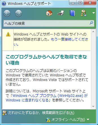 【Windows ヘルプとサポート】が表示された場合、ヘルプはご利用できません。