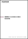 複合機・プリンター追加型アプリケーション「管理者からのお知らせ表示」の取扱説明書ページです。