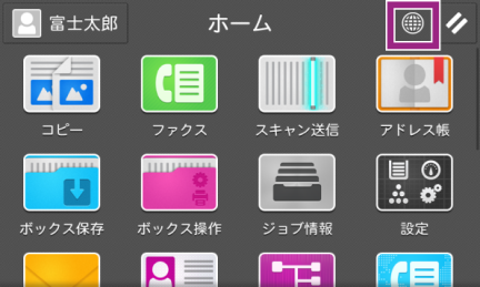- ホームボタンを押し、ホーム画面右上に、言語切り替えボタンが表示されたことを確認します。