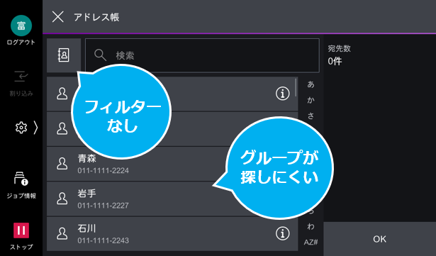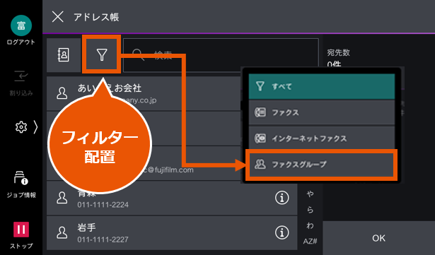 ※ ファクスアプリのアドレス帳画面