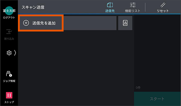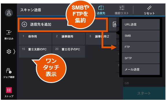 スキャン送信起動時、宛先指定しやすいように表示を改善