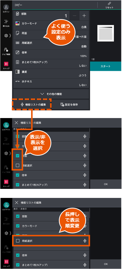 基本設定だけでなく新たにホチキスやパンチなどの設定が可能に