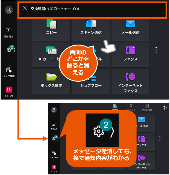 スライディングメッセージがすぐに消せるように動作を変更