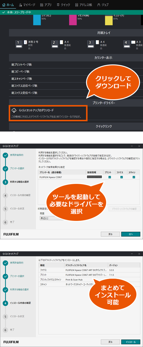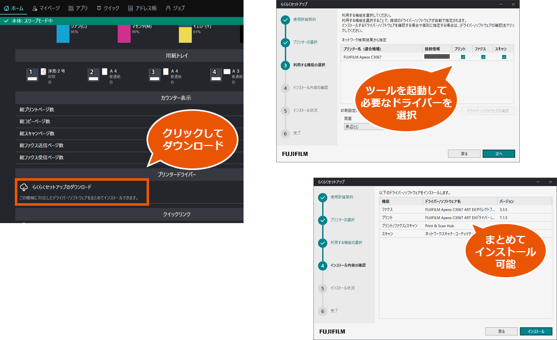プリンタードライバーやスキャナードライバーのインストールが一括で可能