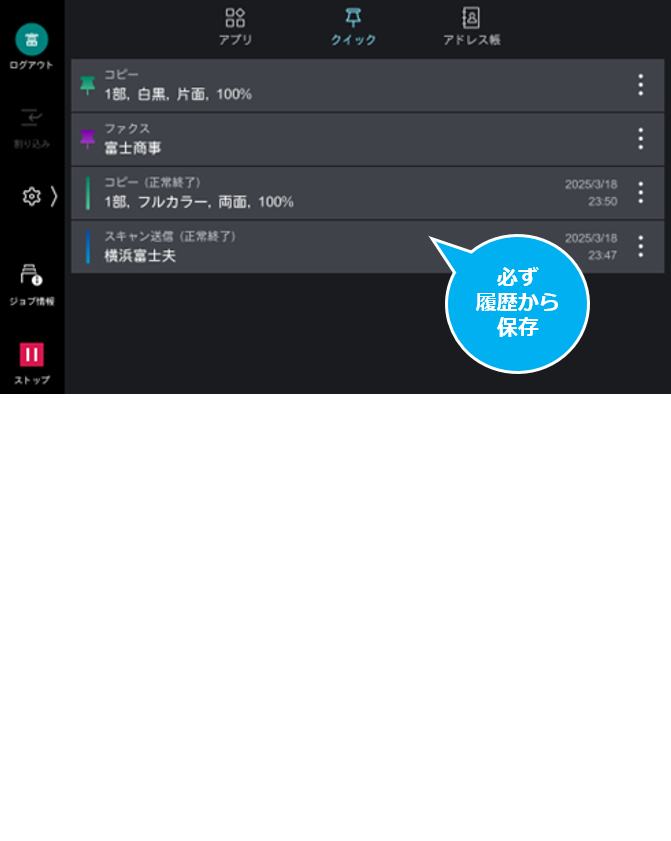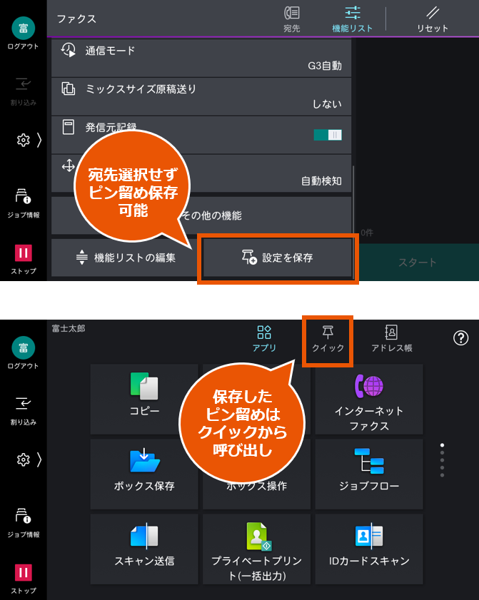 自分だけのピン留め登録! とくに、URL送信やScan to My folderをお使いのお客様におすすめ