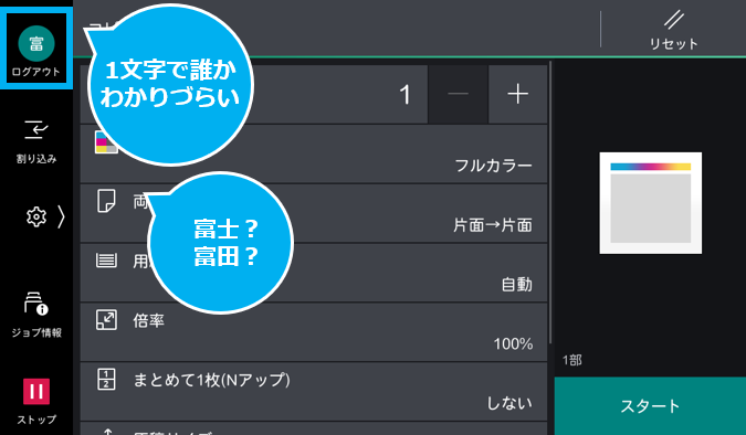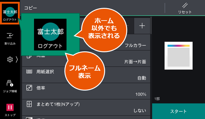 ] > 設定 > システム設定 > 画面/ボタンの設定 > ログインボタンのユーザー名 > 長く表示