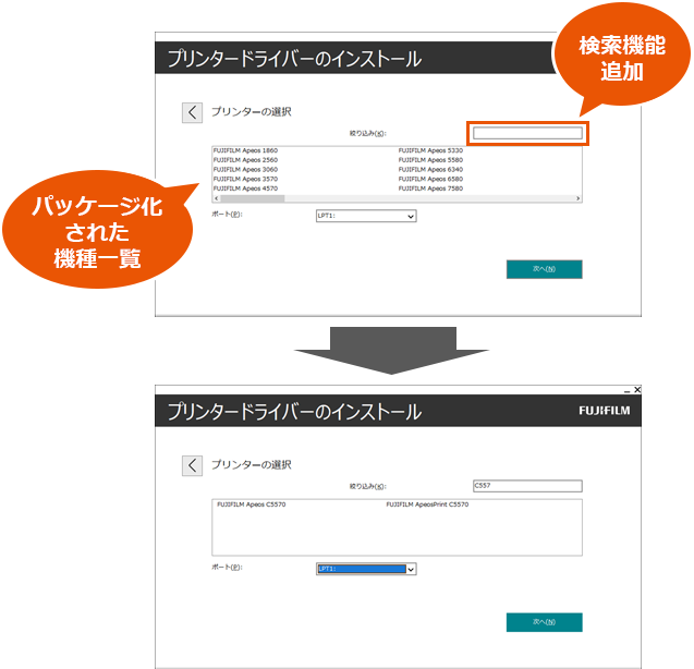 プリンタードライバーのパッケージ化