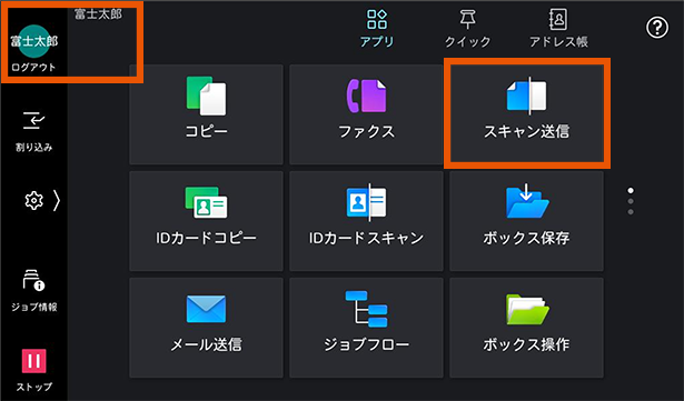 1. ログインしてスキャン送信をタップします。