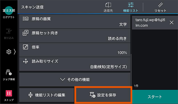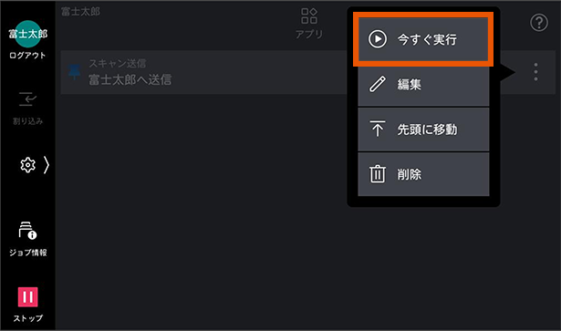 3. 原稿をセットして「今すぐ実行」をタップします。スタートボタンをタップしなくても、すぐにジョブが実行されます。