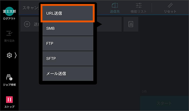 3. [URL送信]または[Scan to My Folder]をタップします。