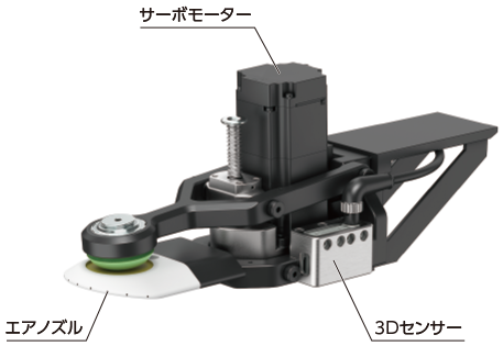 停止位置・加減速・トルク(回転力)を高精度に制御できるサーボモーターにより、つかむ力をコントロールします。