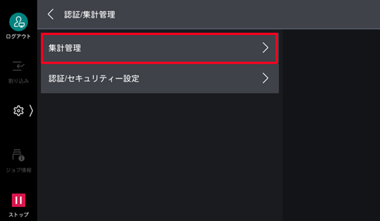 補足 認証および集計の設定によって[プリンター集計データ]は表示されません。 表示されない場合は、操作設定の問い合わせからコンタクトセンターへお問い合わせください。