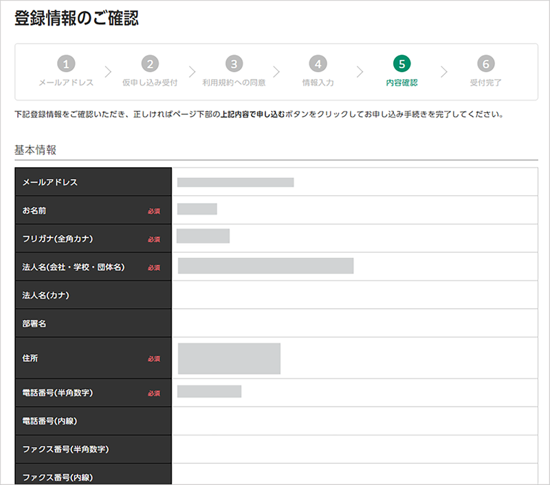 - ご登録情報をご確認いただき、正しければページ下部の[上記内容で申し込む]をクリックしてお申し込み手続きを完了してください。