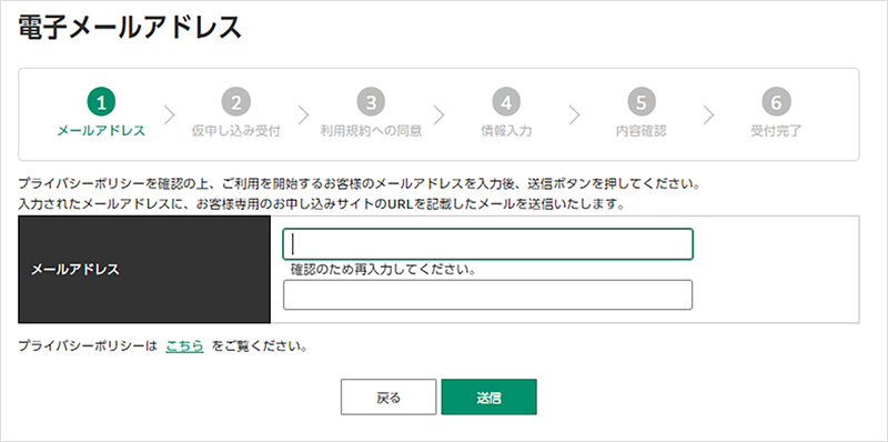 - [メールアドレス]をご入力いただき、[送信]をクリックしてください。