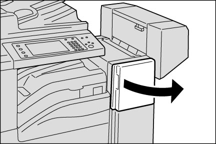 機械が停止していることを確認し、フィニッシャーの正面カバーを開けます。