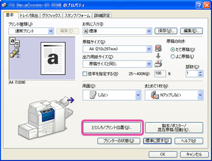 3. [とじしろ/プリント位置]をクリックします。