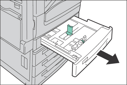 注記- 本機がジョブを処理している間は、ジョブで使用している用紙トレイを引き出さないでください。