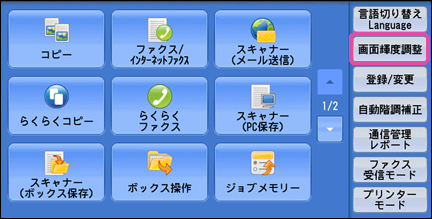 表示される画面で、操作パネルのディスプレイの明るさを調整します。