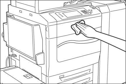 - 機械の清掃を行う場合は、電源スイッチを切り、本体の正面カバー内にある主電源スイッチを切ってから、必ず電源プラグをコンセントから抜いてください。電源スイッチを切らずに機械の清掃を行うと、感電の原因になるおそれがあります。