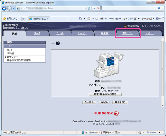 - 本体の操作パネル操作中は、CentreWare Internet Servicesから設定を変更できません。本機が自動リセットされてから、設定を変更してください。
