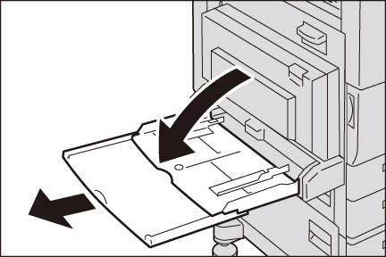 補足- 必要に応じて、延長トレイを引き出します。延長トレイは、2段階に引き出せます。延長トレイを引き出すときは、ゆっくりと引き出してください。