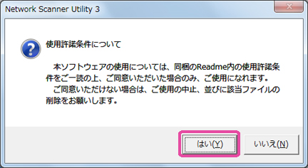 [使用許諾条件について]が表示されるので、[はい]をクリックします。