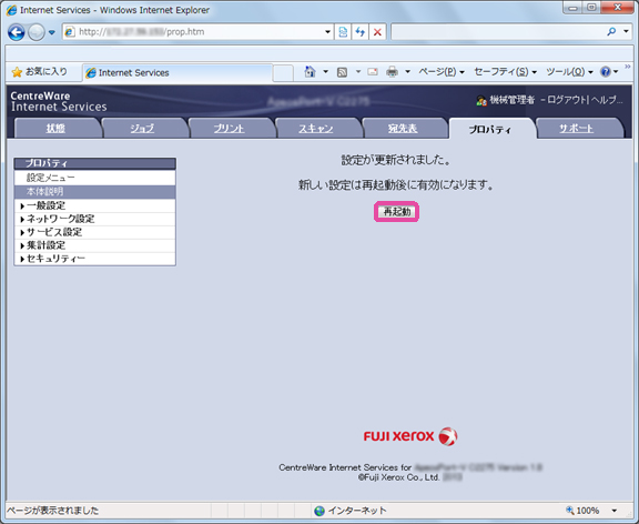 7. [再起動]をクリックすると、新しい設定が有効になります。