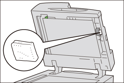裏面読み取りガラスと原稿押さえ(白色のプラスチック部分)をふきます。