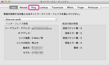 Mac OS Xには、TCP/IPネットワーク通信に関する問題をトラブルシュートするのに使用できるネットワークユーティリティアプリケーションが備わっています。Pingユーティリティは、ネットワークユーティリティアプリケーションに含まれており、Pingテストを実行するのに使用できます。