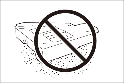 - トナー回収ボトルは、絶対に横向きに置かないでください。故障の原因になったり、トナーがこぼれたりするおそれがあります。
