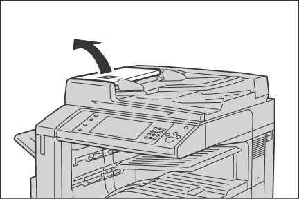 原稿送り装置の上面カバーの取っ手を持ち、止まるところまで開けます。