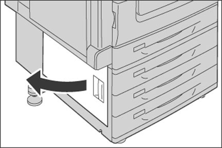 操作パネルに左側面下部カバーでの紙詰まりを示すメッセージが表示されたら、次の手順に従って、詰まった用紙を取り除いてください。