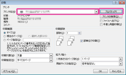 2. [プロパティ]、続いて[印刷]画面で[OK]をクリックして、印刷を開始します。