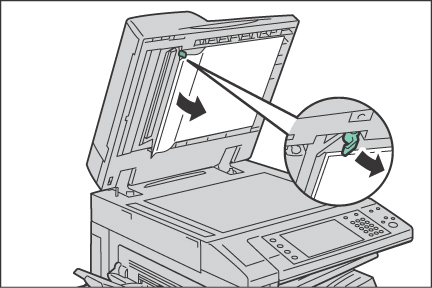 原稿送り装置を静かに持ち上げて、原稿の裏面読み取り部を開きます。