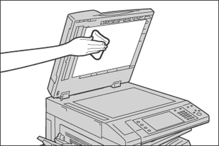 水で湿らせた柔らかい布で、原稿ガラスの汚れをふき取り、乾いた柔らかい布でからぶきします。
