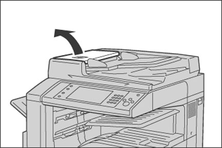 原稿送り装置のカバーの取っ手を引き上げて、止まるところまで開けます。