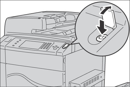 カバーを開け、電源スイッチを押して、電源を切ります。