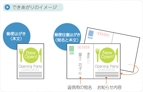 はがきの裏面に、本文をプリント、またはコピーする場合のセット方法を説明します。