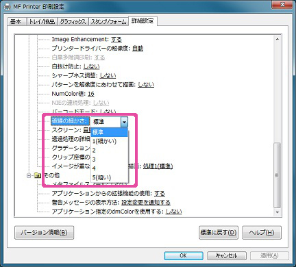アプリケーションによっては、プリンタードライバーに対して点線の粗さを指定してこないものがあります。その場合、点線の粗さは、プリンタードライバーが独自に決定して印刷しますので、画面と異なる場合があります。
