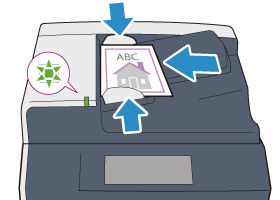 ファクス送信時に原稿の左上の角をそろえてセットします。