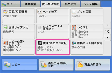 原稿を鏡像でコピーしたり、白黒反転させてコピーできます。