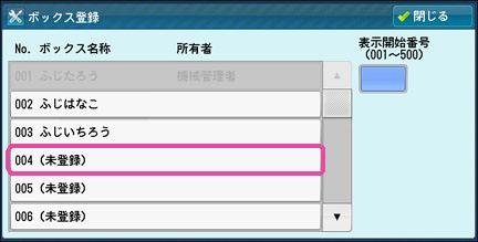 空欄(未登録)の親展ボックスを押します。