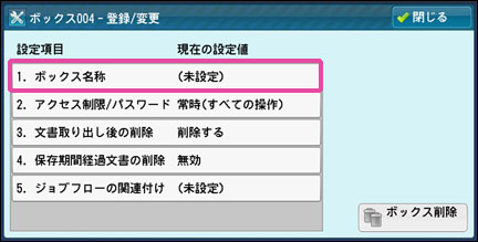 [ボックス名称]を押します。