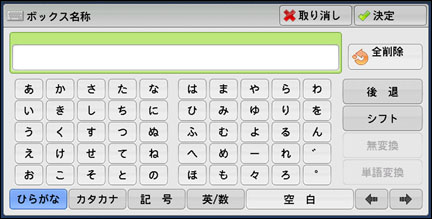 キーボードと数字ボタンを使って、親展ボックス名を入力します。これが新しい親展ボックス名となります。全角で10 文字(半角で20 文字)まで入力できます。