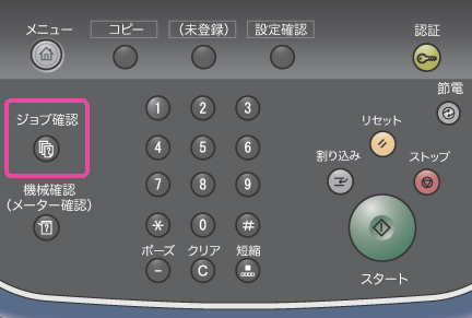 プリント中、コピー中、受信中、プリント待ち、送信待ち、正常終了、良好などのジョブの状態を表示します。