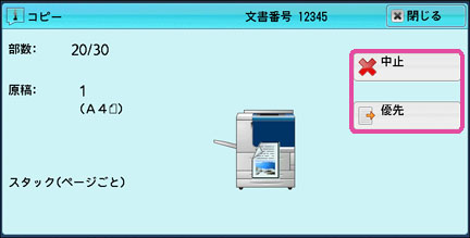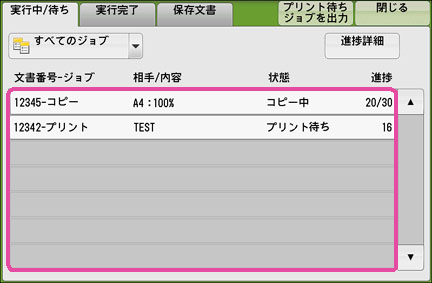 ジョブを中止したり、優先的に実行する場合は、該当するジョブを押します。