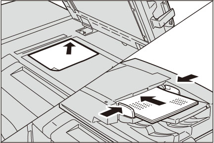 スキャンする原稿を原稿送り装置におもて面を上にしてセットするか、原稿ガラス上におもて面を下にして(1枚ずつ)セットします。