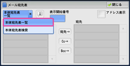 ドロップダウンメニューから、[本体宛先表一覧]を選びます。